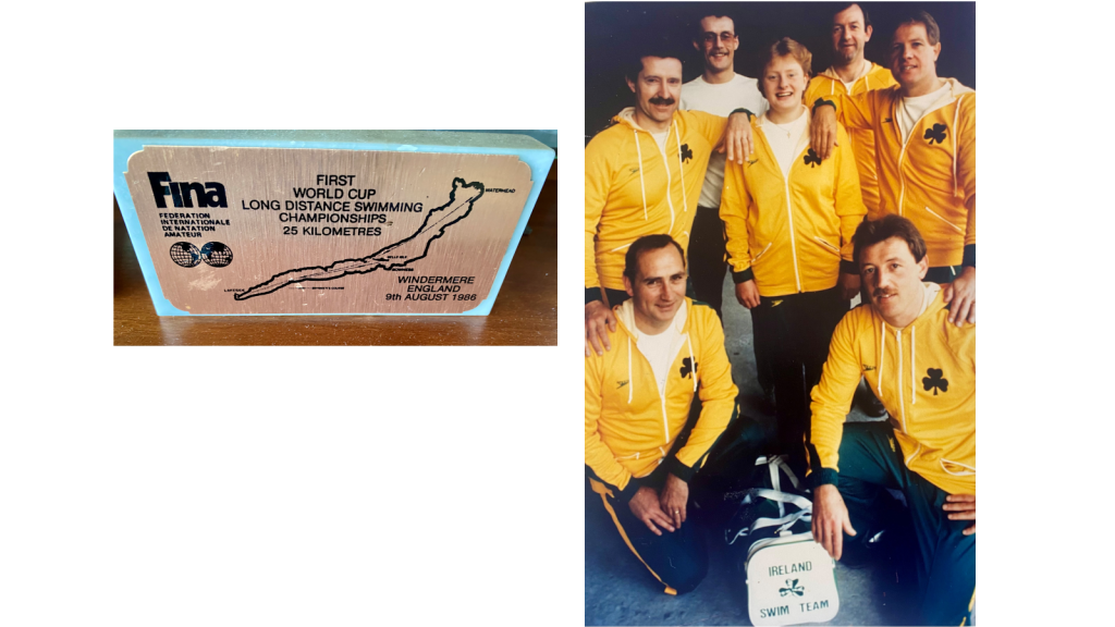 Some of Irish Team for the 1986 First World Cup -25km – my dad (Joe) is in the left hand corner and to my left is the legend of Irish Open Water swimming and administration Billy Wallace